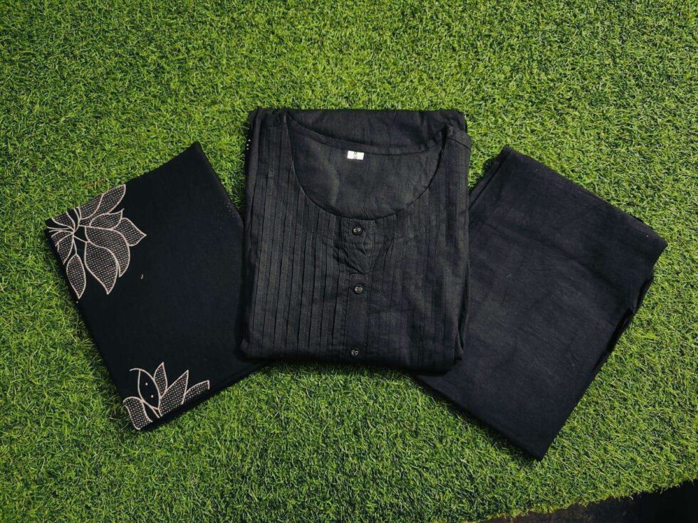 Bring traditional charm and modern elegance together with this Long Kurta featuring Discharge Floral Print and Printex, paired beautifully with matching pants and a dupatta. This set is designed for women who appreciate comfort without compromising on style. Whether you’re attending a festive occasion or a casual gathering, this set ensures you look graceful and feel comfortable all day long.